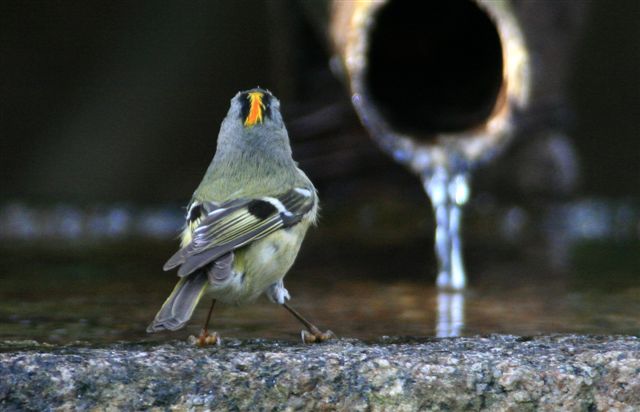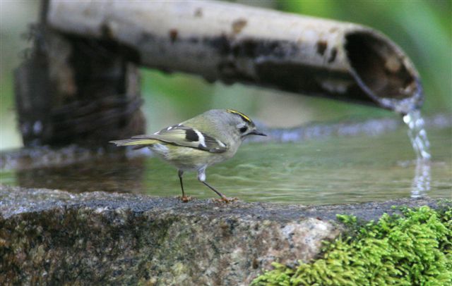 水のみ場にやってきた この高さでなら 頭頂部の黄色が確認できる