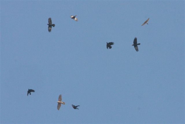 (12)オオタカに対するカラスのモビングに加わったチョウゲンボウ