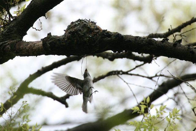 コサメ繁殖2 おなじ巣です。 抱卵中 残念ながら春の強風にて、この枝は折れてしまった。(08/ 5/ 5 植物園)
