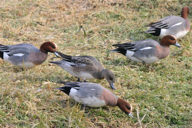 ヒドリガモは、しばしば陸にあがって草を食べます。