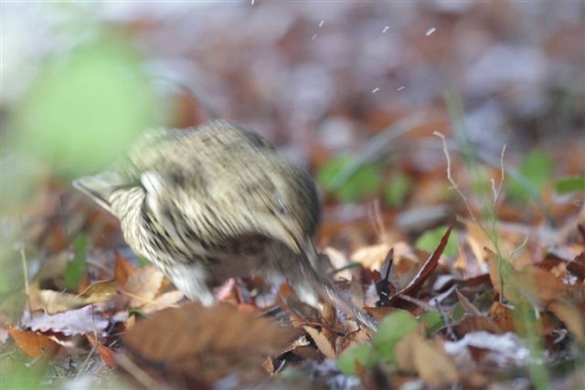 C 落ち葉をめくらず、落ち葉ごとミミズをくわえる激しい俊敏な攻撃