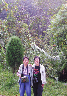 昨日と異なった道でしたが、舗装道路と森と谷、どこも同じ景色にみえますが。少し走ったところで、運転席のユーミンとビーが相談してビーと私が下車、車は坂を下ってゆきました。この2人、実に仲がよくて、終始話をしています。極端にいえば、シンガポールから宿まで、話続けて、それも、ユーミンがとても楽しそうに時々笑うのです。