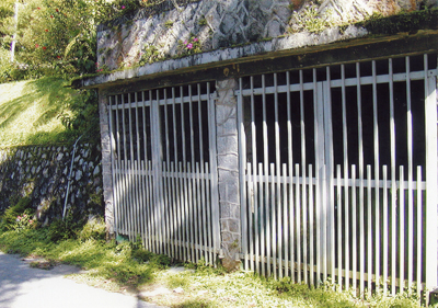 宿に戻ると、ビイーが呼ぶので行ってみると、家が坂を上ったところにあるので、下の道路と坂の上の家の間にガレージ、大型車が2台優に入る広さで鉄の扉が締まっていましたが、、その戸の柵に沢山隙間があって、
